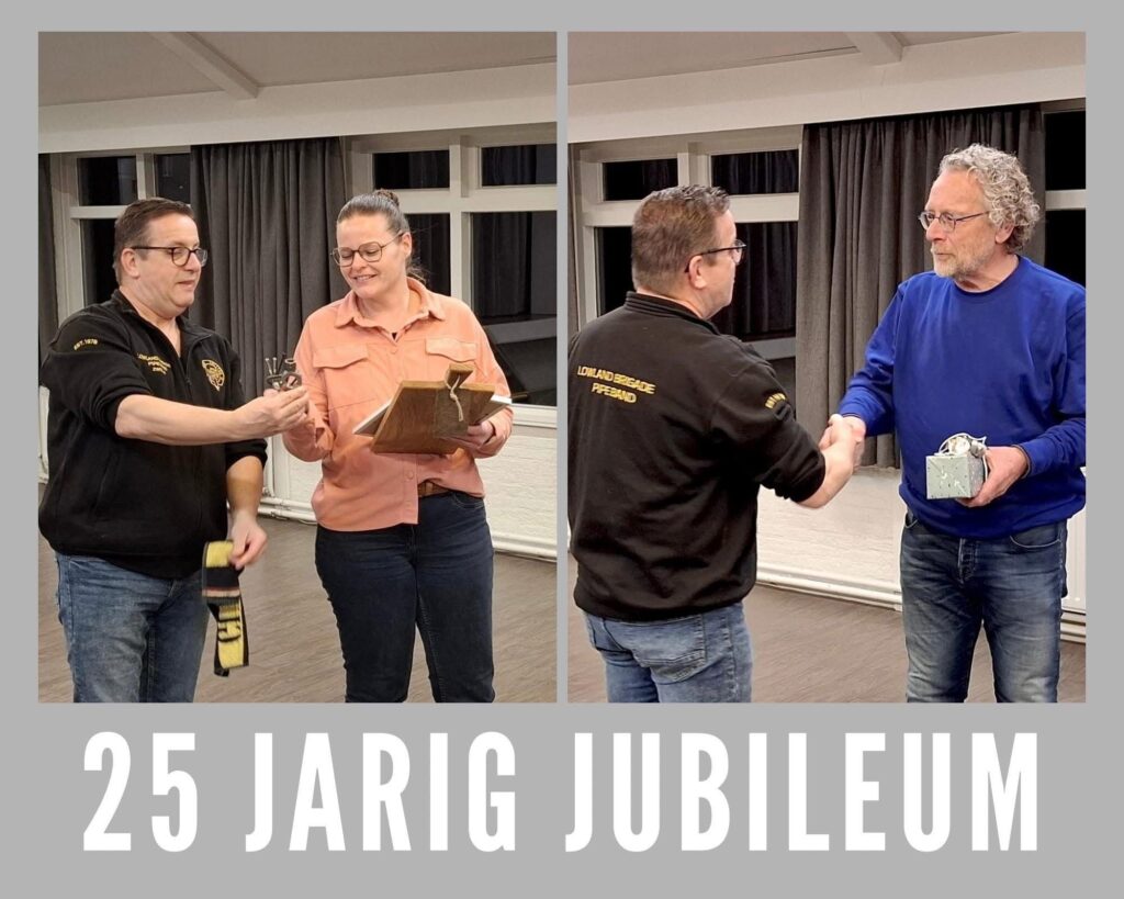 Namens het bestuur en alle leden: Anita en Hans, hartelijk dank voor 25 prachtige jaren. We zijn enorm trots dat jullie deel uitmaken van de Lowland Brigade Pipe Band, en we hopen nog vele jaren samen muziek te maken!